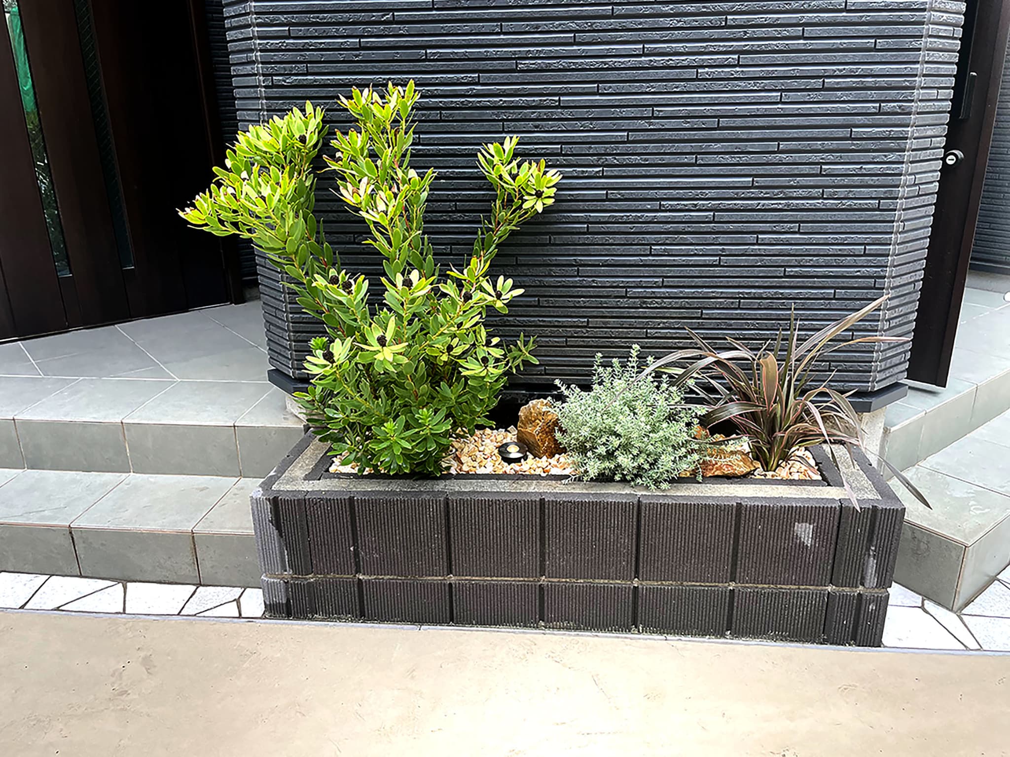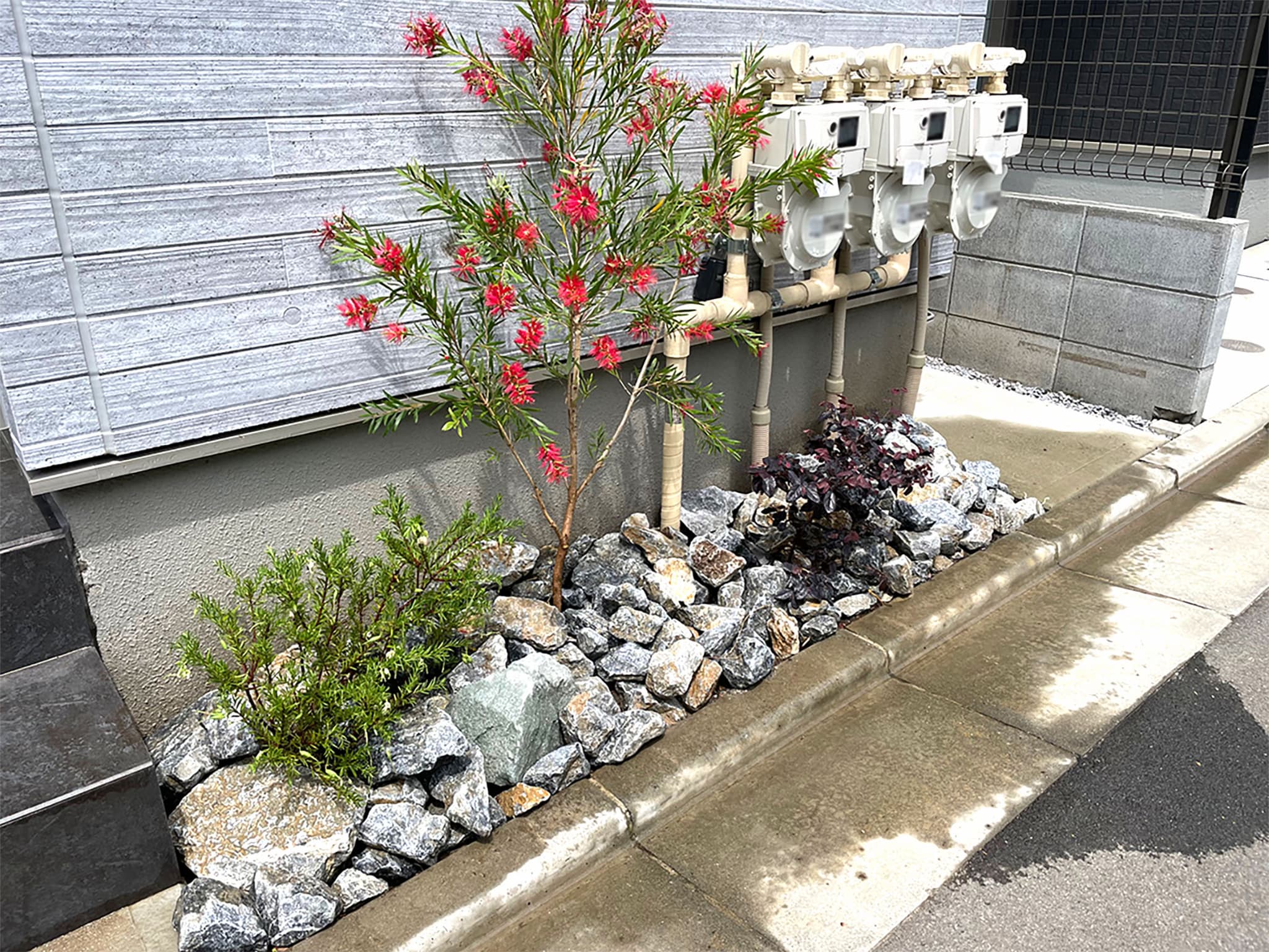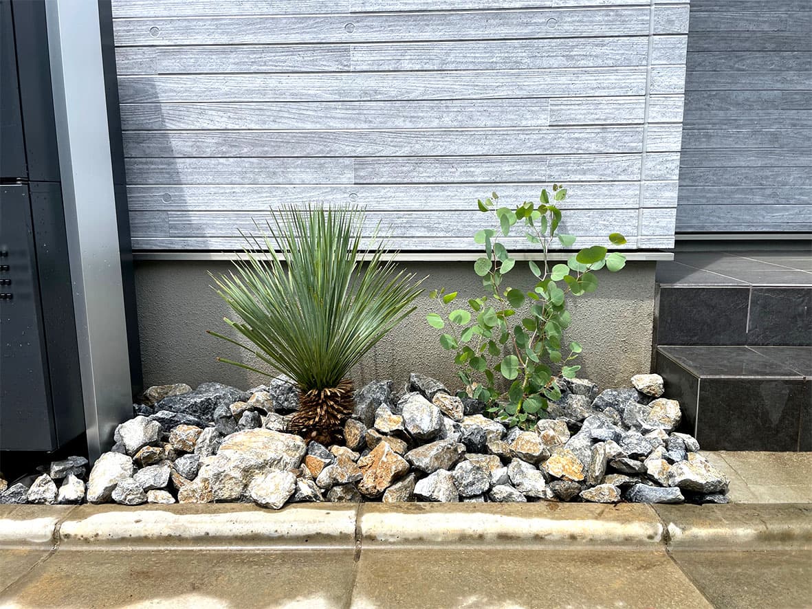 化粧砂利や石を使用することで狭い範囲でも素敵なロックガーデンをつくることができます。